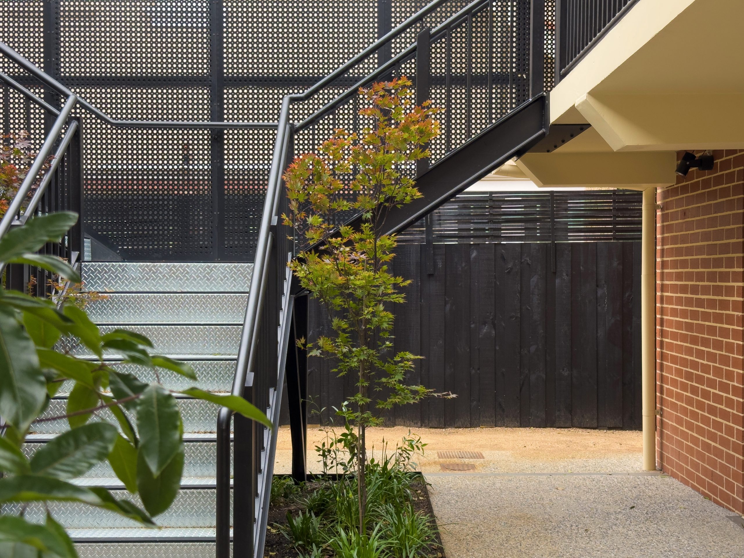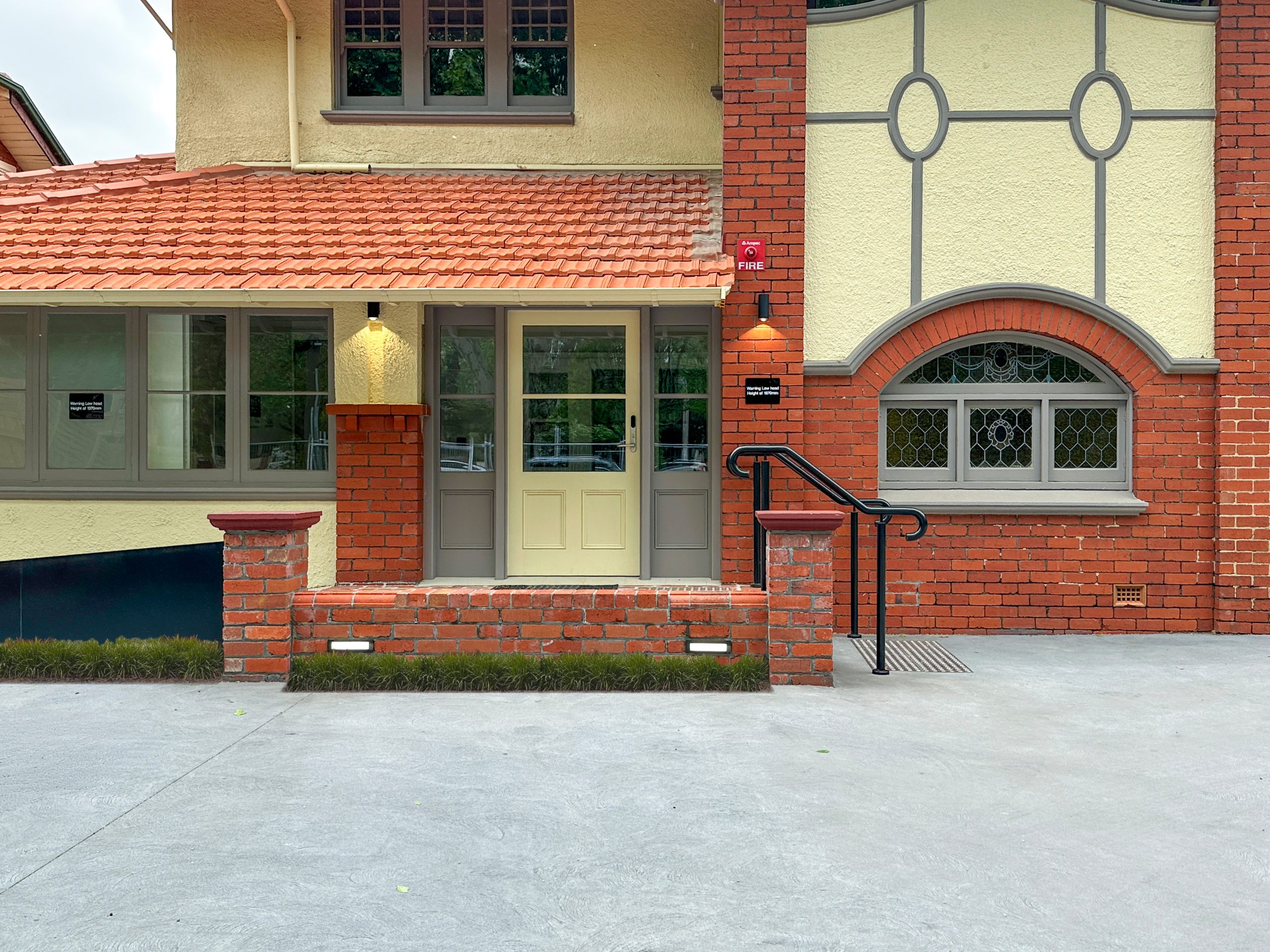 Rather than demolish, we restored and reimagined. The project carefully adapts the existing three double-storey buildings, including a heritage-listed front building designed in 1919 by Howard R. Lawson-a pioneering Melbourne architect known as 'the architect who builds' who championed adaptive reuse decades before it became standard practice. External restoration works breathe new life into the structure, replacing roof tiles, restoring original windows and leadlight details and removing non-original elements, while introducing essential accessibility upgrades including a DDA-compliant wheelchair platform lift.