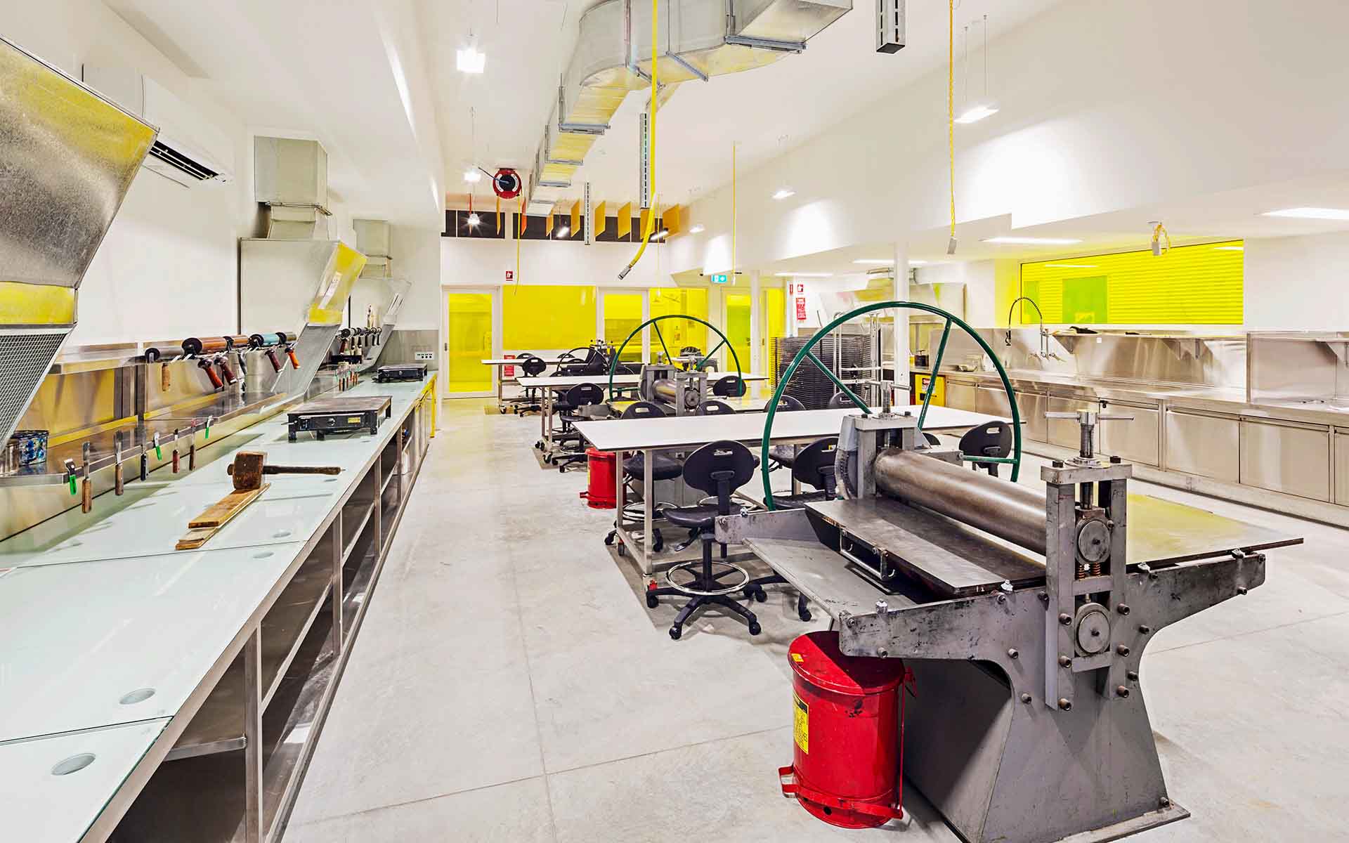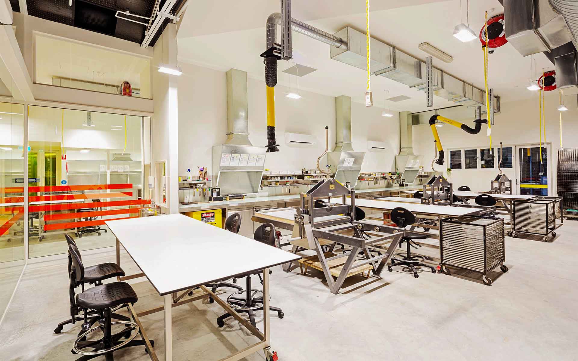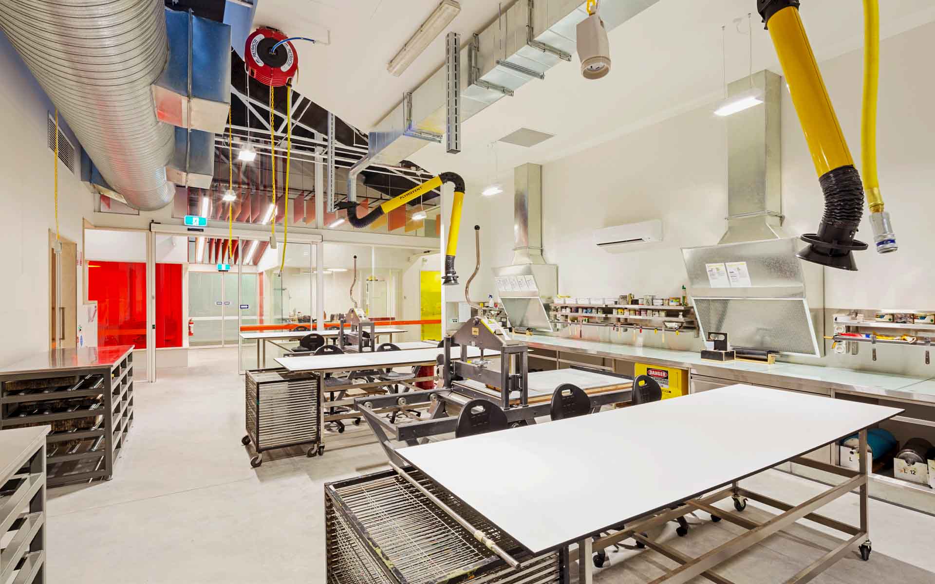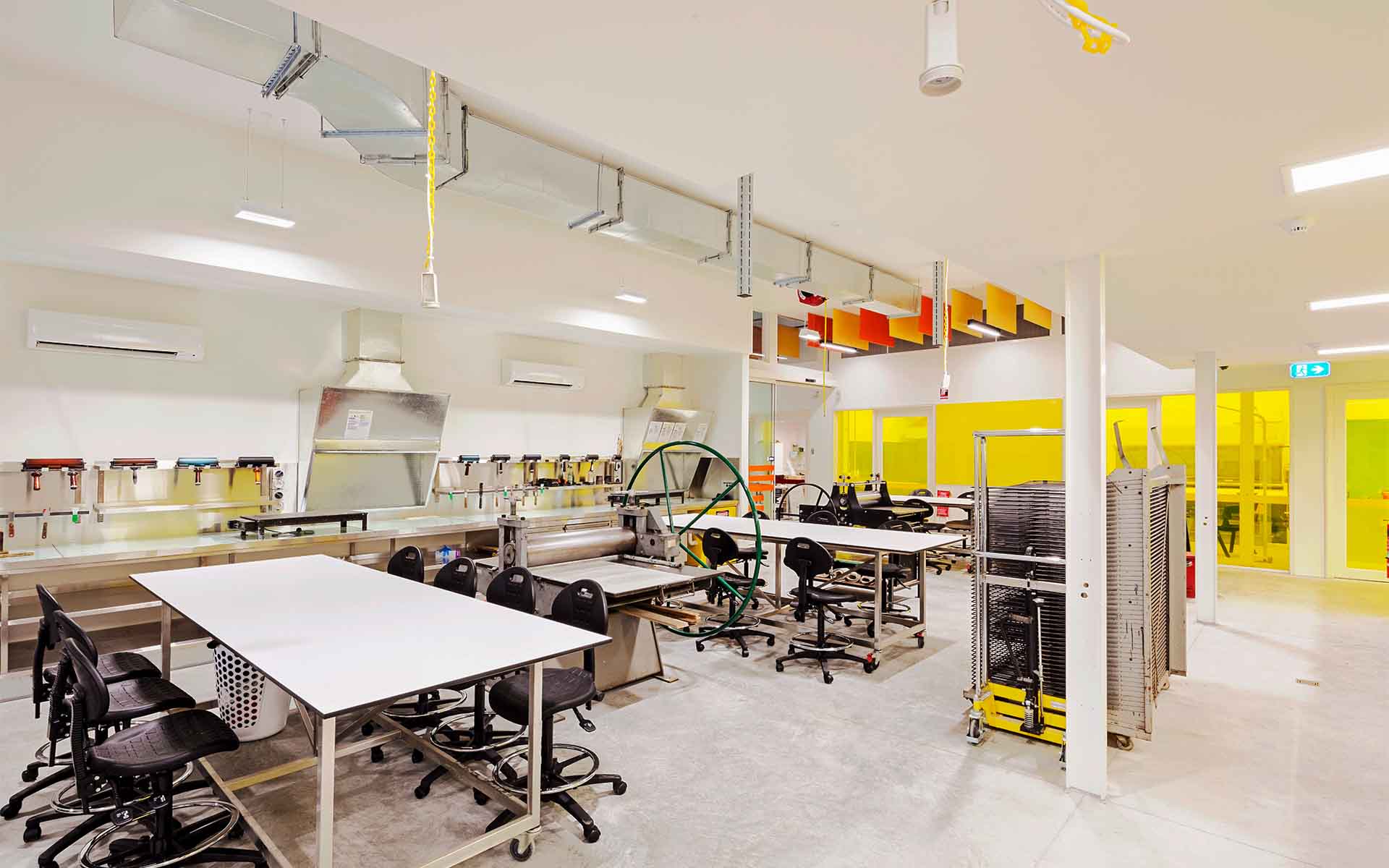 HATZ has recently completed Stage 1 of a series of bespoke workshop upgrades at the Victorian College of the Arts. The project called for the co-location of two print workshops into one consolidated area within an existing building as well as the design of a new storage shelter. The project with be staged so as not to disrupt teaching at the University. Key considerations for the project are issues concerning thermal comfort and acoustic performance.
